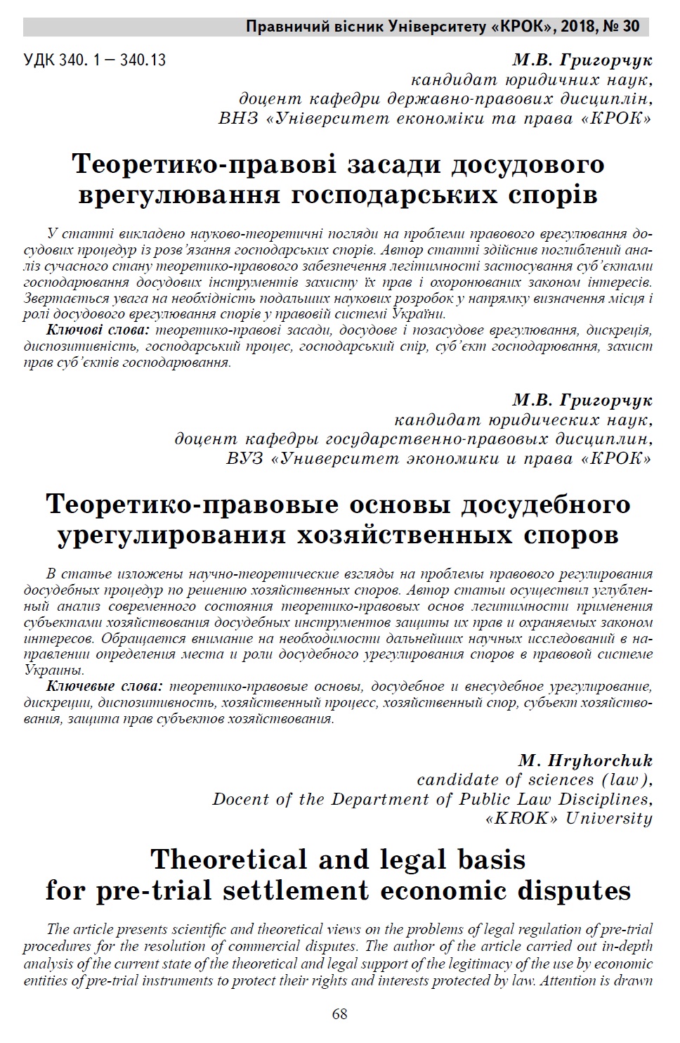 № 30 (2018): Правничий вісник Університету "КРОК"